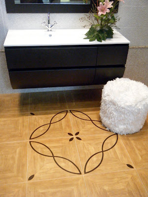 This wood inlay is actually ceramic tile. The design is ink-jetted on to the surface.