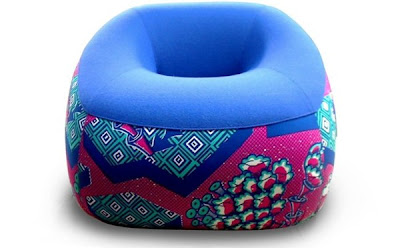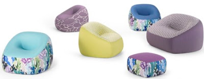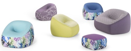 Swamp is an upholstered fauteuil designed by Michiel van der Kley. Artifort's Swamp collection (below) features a one-person armchair, a snug loveseat and a pouffe that makes an ideal footstool or extra seat. The entire Swamp family utilizes spiral springs and foam and is upholstered in two contrasting fabrics.