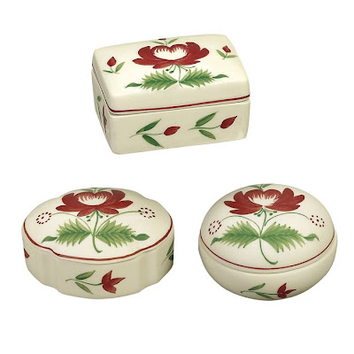 Du Pont’s holiday tableware is the inspiration for the Adams’ Rose collection by Andrea by Sadek. The collection includes scalloped dishes, boxes, a tea-for-one set, mugs and planters.