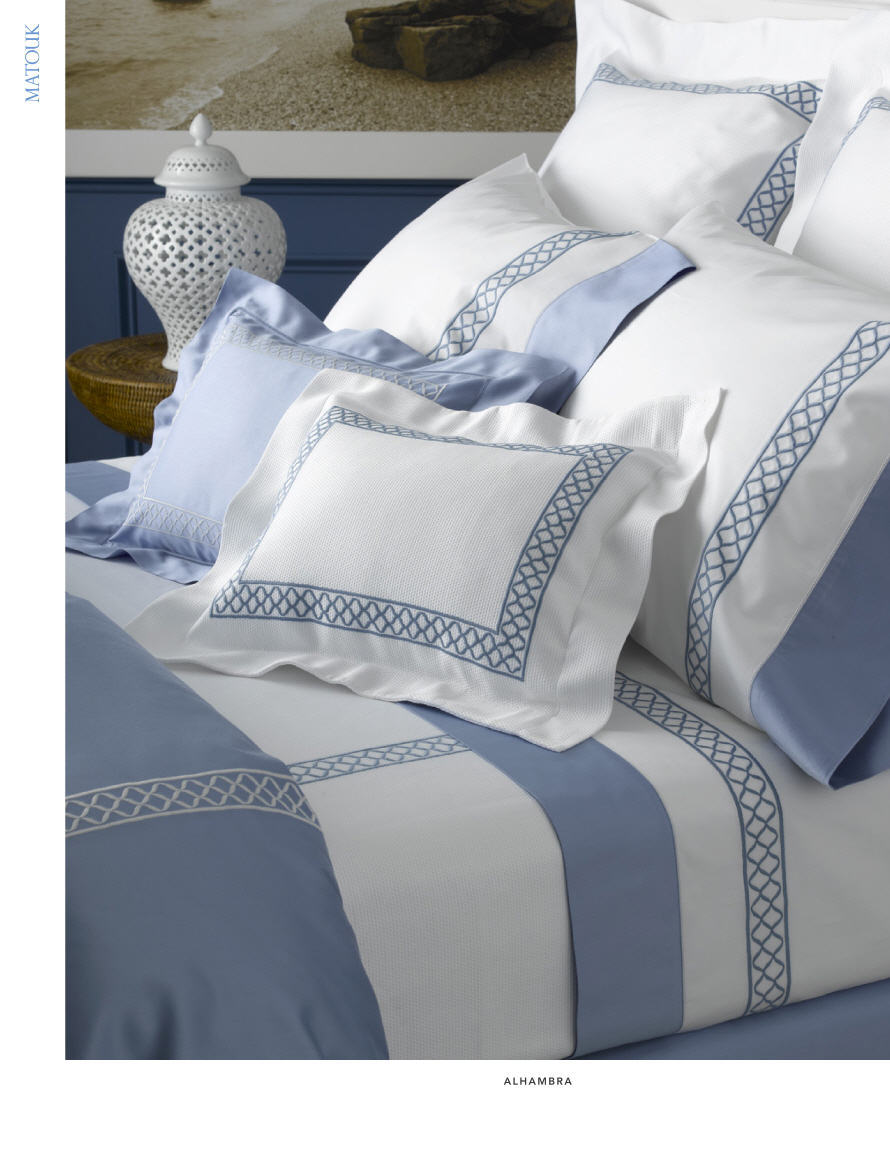 The third-generation, family-owned Matouk company makes bed, bath and table linens. At the New York International Gift Fair, the company introduced Lowell and Mirasol table linens, elegant top of bed styles Bryant Park and Greenbrier, fragranced candles and soaps, and new small-scale prints. Shown are examples of Matouk's style.